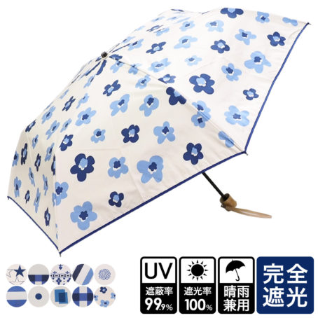 完全遮光 晴雨兼用傘 超撥水 ブラックコーティング マルチ柄折りたたみ傘